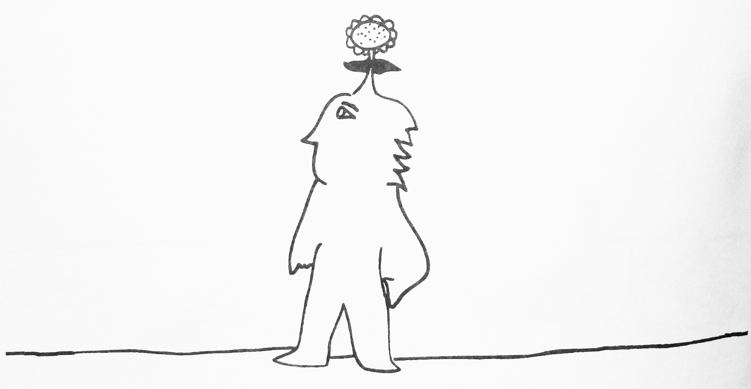 One morning he realized a flower had sprouted on top of his head.