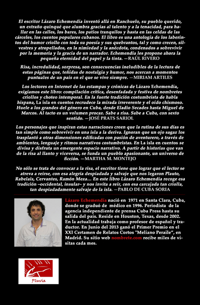 Lázaro Echemendía nació en 1971 en Santa Clara, Cuba, donde se graduó de médico en 1996. Periodista de la agencia independiente de prensa Cuba Press hasta su salida del país. Reside en Houston, Texas, desde 2002. En la actualidad trabaja como professor de español y traductor. En junio del 2013 ganó el Primer Premio en el XX! Certamen de Relatos Cortos «Meliano Peraile», en Madrid. Su sitio web nombrete.com recibe miles de visitas al mes.